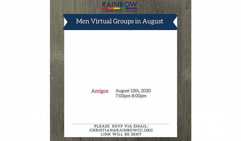Join us for our Amigos Virtual Group on August 12th. This is a social group made up of Gay, Bisexual, and Trans men and their allies!