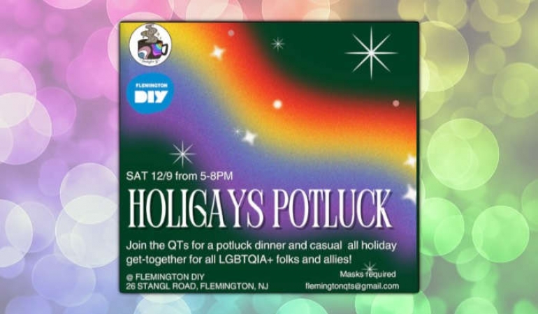 Join the Flemington QTs for a Holiday Potluck on Saturday, Dec. 9, at 5PM at Flemington DIY.