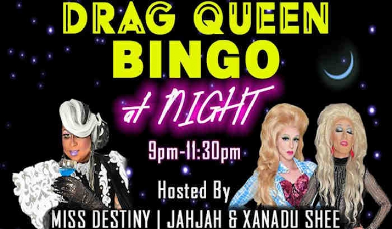 Three games of bingo! Cocktail tutorial! Drag performances! Prizes!