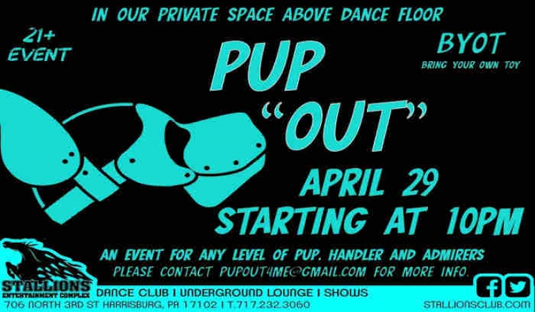 The pup out space will be monitored throughout the night to keep the space with a positive atmosphere for the pup community. An additional charge will be added on to gain access to the pup out space above the dance floor.