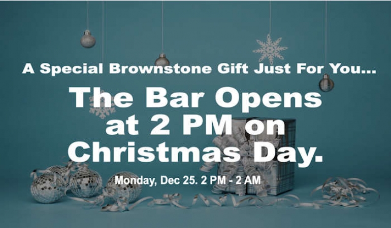 No plans or don’t celebrate the holiday? No problem. Come spend it with us! It’s a Brownstone tradition and we’re happy to ring in Christmas with our favorite people: All of you!