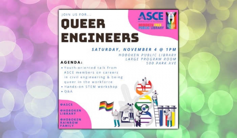 Hoboken Rainbow Family is partnering with the American Society of Civil Engineers and the Hoboken Public Library to present a youth-oriented talk on careers in engineering and being queer in the workforce.