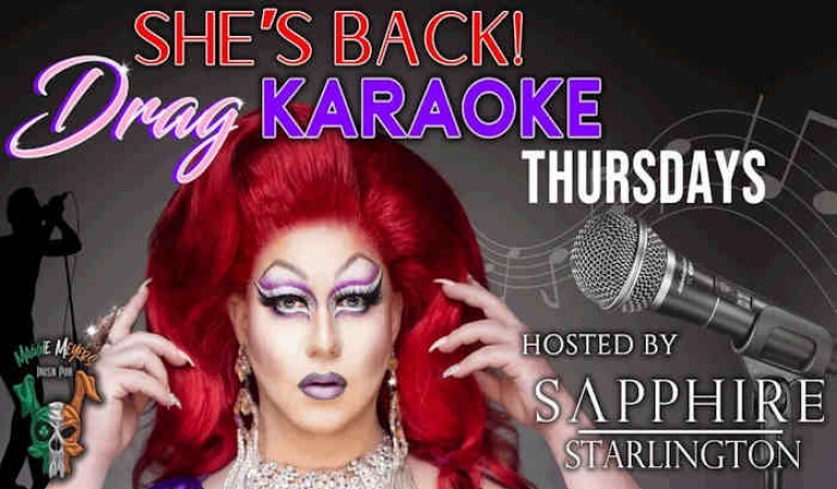 Drag Karaoke is back! Every Thursday, Hosted by Sapphire Starlington.