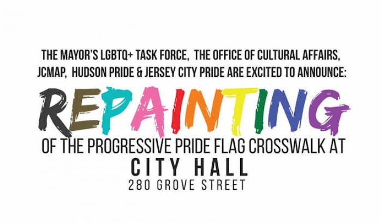 The Mayor’s LGBTQ+ Task Force, the Office of Cultural Affairs, JCMAP, Hudson Pride Center & the Jersey City LGBTQ+ Pride Festival are excited to announce the repainting of the Progressive Pride Flag street mural in front of City Hall for JC Pride Month this August!