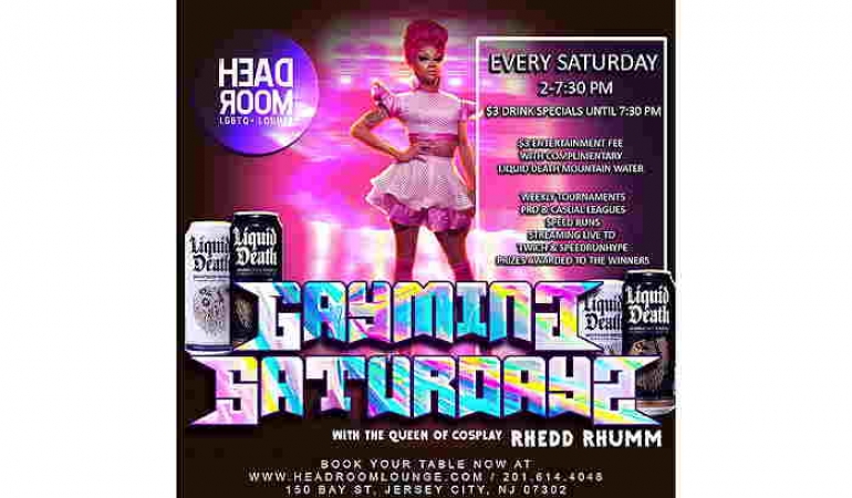 Calling all Gaymers Gayming Saturdays at Headroom sponsored by Liquid Death starts this weekend!