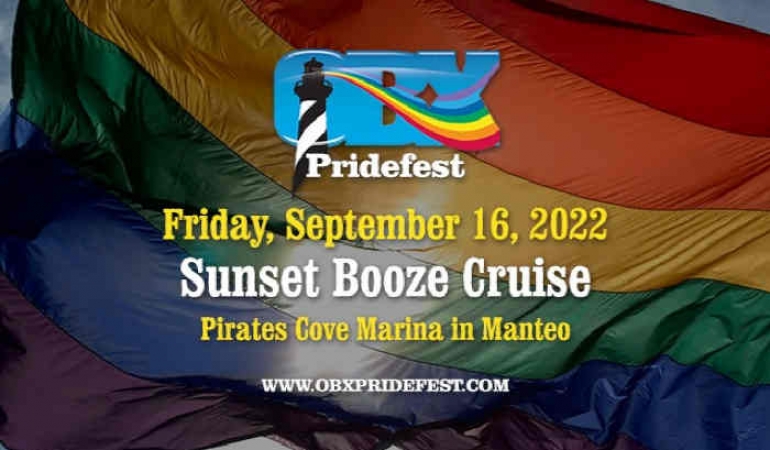 The 11th Annual OBX Pride Sunset Booze Cruise features FREE beer & wine and an onboard dance club with MC Jennifer Warner.