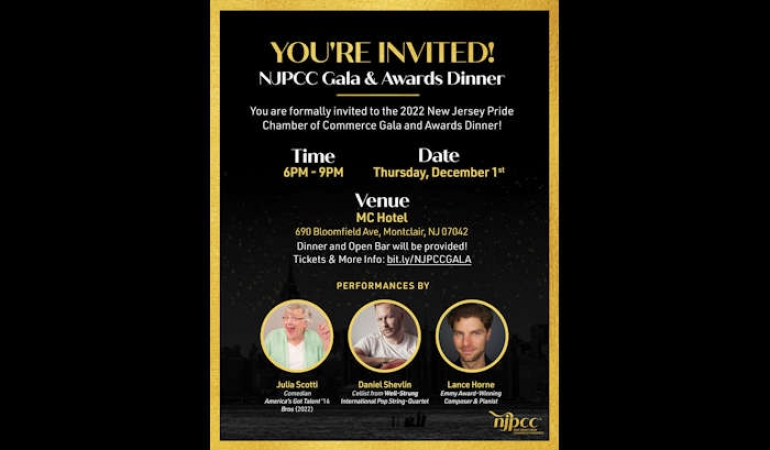 Join NJPCC as we host the 1st Annual New Jersey Pride Chamber of Commerce Gala and Awards Dinner! This Gala will celebrate the accomplishments of LGBTQ+ business owners and allied advocates, a spectacular year for NJPCC, and will feature entertainment and exciting announcements!