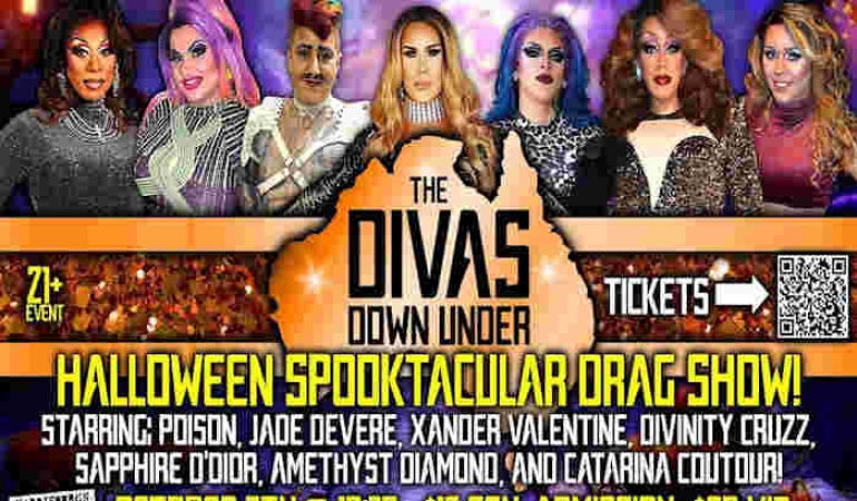 Come kick off the spooky season at the Divas Down Under Drag Show! We'll put a spell on you during a night of fun and fabulous performances!