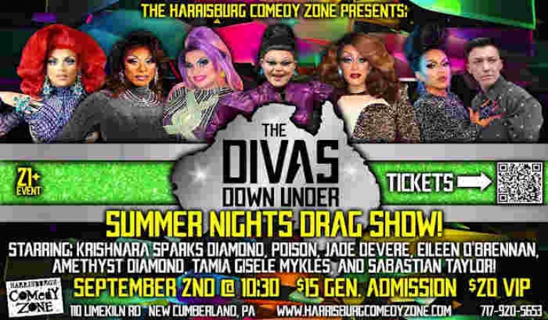 Divas Down Under Summer Nights Drag Show at Comedy Zone in New Cumberland PA