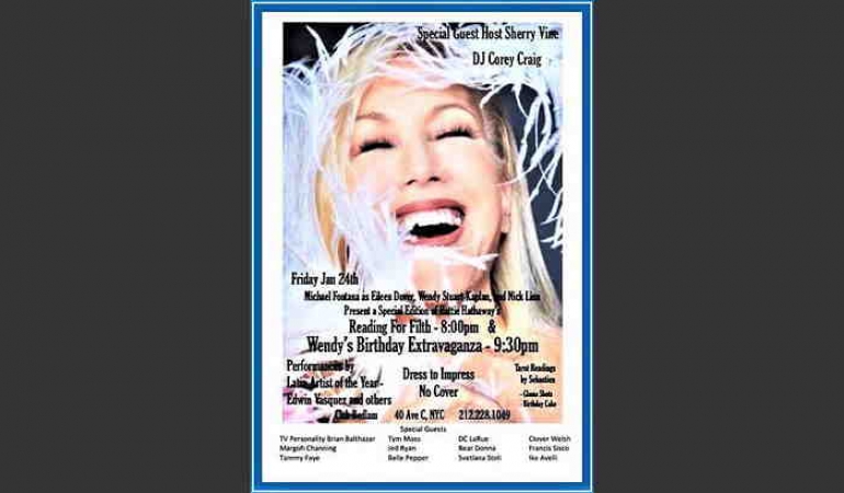 A very special edition of Hattie Hathaway’s Reading For Filth with a major party of the year Birthday Extravaganza for our dear Superstar Wendy Stuart Kaplan