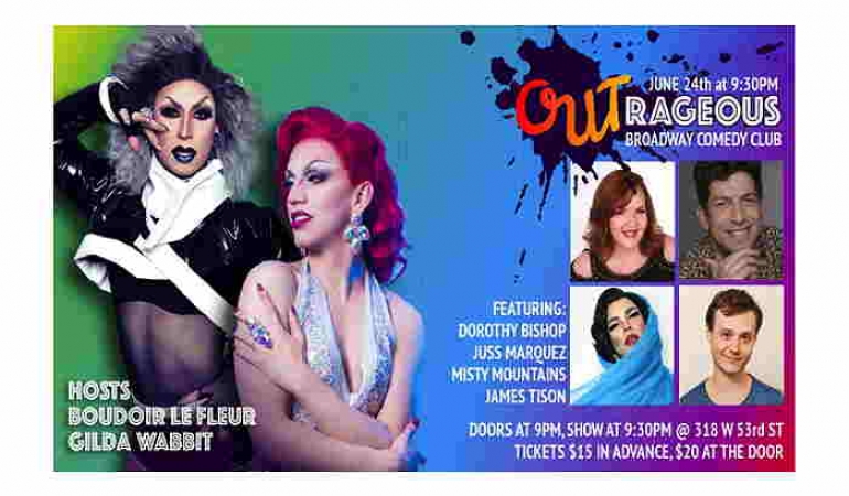 Gilda Wabbit and Boudoir LeFleur kick off Pride Week at the famous Broadway Comedy Club. Joined by the the "Dozens Divas" diva Dorothy Bishop, drag goddess Misty Mountains Davenport, and stand up comics James Tison & Juss Marquez, the night is guaranteed to be OUTrageous!