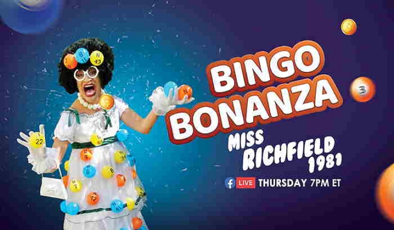Miss Richfield 1981 will turn your living room into a church basement with Bingo Bonanza! Miss R has washed and sanitized her balls, so it’s safer than ever to join her for games and stories and music! You might be isolated, but you’re never alone when you play Bingo Bonanza with Miss Richfield! All ages welcome.