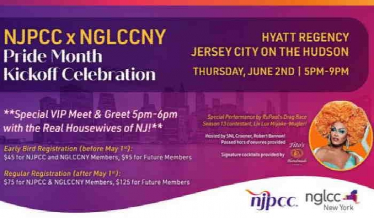 Join NJPCC and our sister affiliate, NGLCCNY, for an unforgettable Pride Month Kickoff Celebration at the Hyatt Regency Jersey City on the Hudson on June 2nd! Enjoy passed hors d'oeuvres, signature cocktails provided by Tito's, and fabulous entertainment - all of this with a spectacular view of the NYC Skyline in the incredible Manhattan Ballroom.