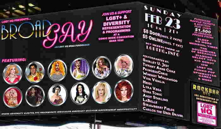 Sunday, February 23, 9:00 pm, LGBT HQ brings you Divas of Broadway and Drag as these femme phenom's entertain you for a night full of fun and over $1,500 in prizes at Rockbar NYC!
