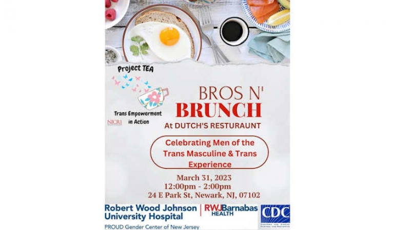 Come to NJCRI and Project TEA's Bros N' Brunch on March 31, from 12pm-2pm at Dutch's Restaurant!! Let's celebrate men of the trans masculine and trans experience!
