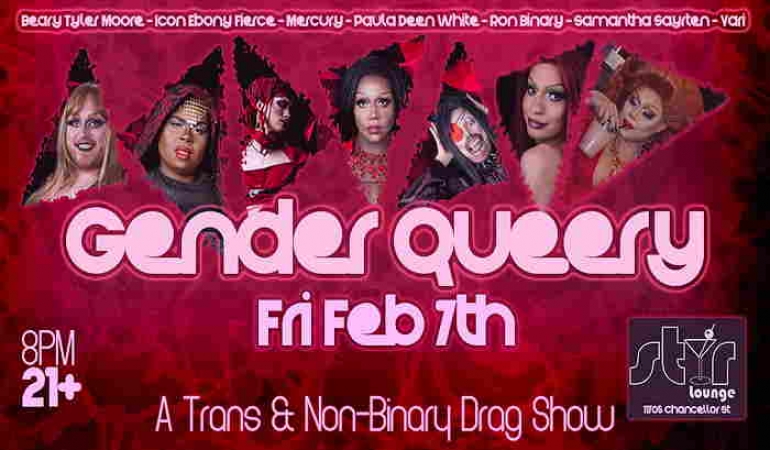 Gender Queery steals your heart every first Friday with your favorite lineup of binary busting buffoons. Gender Queery seeks to deconstruct the notions of the misogynistic elements of a drag show and presents drag as an art form to express the journey of gender discovery. Gender Queery is a trans and nonbinary inclusive space open to everybody under the LGBTQIA+ umbrella.
