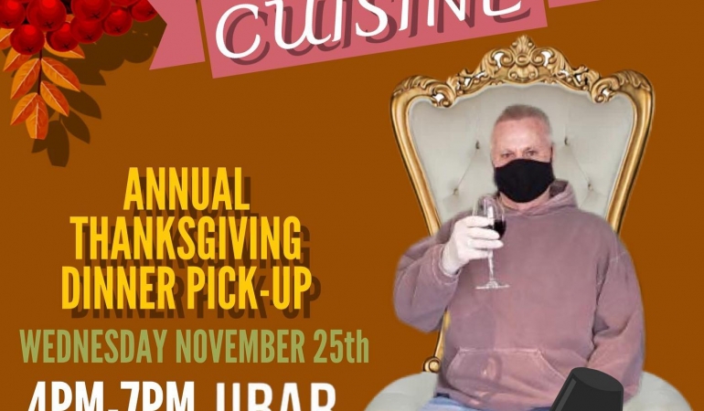 Gobble Gobble! On Wednesday, November 25th from 4PM-7PM we will be continuing our holiday tradition with Donnie’s Annual Thanksgiving Dinner! This year (in line with the times we’re living in) the meal being provided will be for TOGO. Turkey, mashed potatoes, squash, cranberry, and all the colorful fixing’s that Donnie wants to fill those bellies. Limited quantities will be available for our loyal customers and regulars whom we are very thankful for. So stop in, grab a walktail, and PICK UP a delicious, holiday meal on the house. You might even catch the old Kween basting in a tub of gravy with a cigarette in his mouth. So please join us a hop skip down at U Bar.