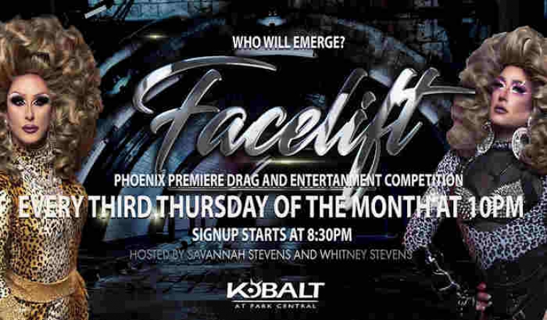 Phoenix premiere talent competition. Entertainers from our diverse community hit the Kobalt stage in hopes of becoming the next Facelift winner.
