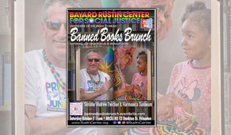 Their BRCSJ Defenders of the Right to Read invite you to a very special BANNED BOOKS BRUNCH to honor our dear friends & stalwart allies Harmonica Sunbeam & Senator Andrew Zwicker!
