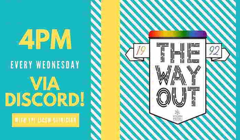 Each Wednesday at 4pm, Youth Pride, Inc. will be hosting The Way Out via our Discord server! For access to the server, email Dev@youthprideri.org.