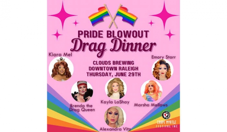 Join them Thursday June 29, 2023 at Clouds Brewing: 126 N. West Street in Raleigh. Hosted by the incredible, EMORY STARR, what a better way to wrap up Pride month with this incredible lineup! Kayla LaShay, Brenda the Drag Queen, Marsha Mellows, Alexandra Vittz, and the reigning Miss Gay North Carolina America, Kiera Mel!! Doors open at 7pm, show starts at 7:30pm, don't be late!