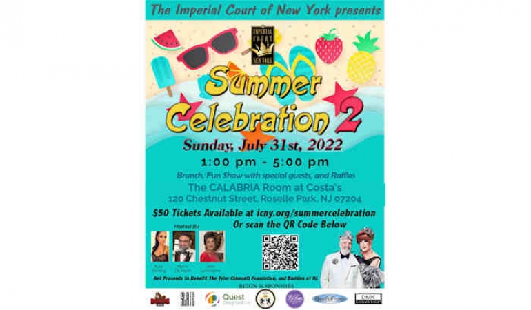 Please Join The Imperial Court of New York and Their Most Imperial Sovereign Majesties Emperor XIII, and Regent Emperor XXXI Ron & Empress XIII, XXIII, and Regent Empress XXXVI Anne Tique for Summer Celebration 2: An Afternoon of Food and Fun.