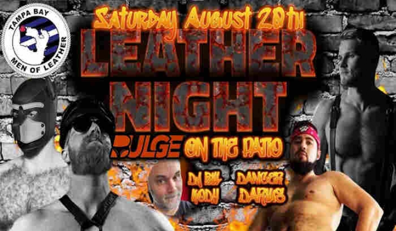 The monthly Tampa Bay Men of Leather Night is happening Saturday August 20th starting at 9 pm @ the Garage.