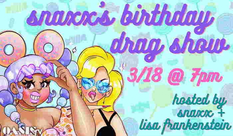 To combat the blues of having her 2nd birthday in quarantine, Snaxx is throwing a big birthday drag show!