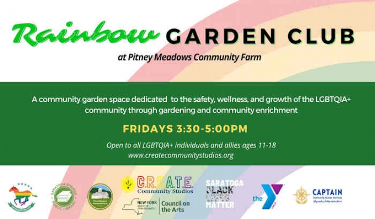 CREATE Community Studios is excited to join forces with Pitney Meadows Community Farm, CAPTAIN Community Human Services, Saratoga Springs Public Library, Saratoga PRIDE, and the Saratoga YMCA to offer Rainbow Garden Club! This collaboration has come about in response to a desire among local LGBTQ youth to have a welcoming space in the community, and a space that quite literally lets them grow.