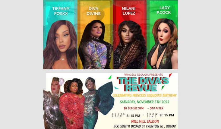 THE DIVA'S REVUE IS BACK BACK BACK AGAINNNNNN, Bringing Trenton a DRAG SHOW in a safe and welcoming spot Mill Hill Saloon. Come out and enjoy some of the Capital City's finest entertainers as we put on a night of glitz, glamour, entertainment, and mouth-watering food.