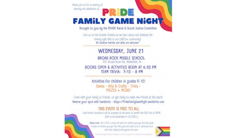 Pride Family Game Night at Broad Rock Middle School in Wakefield RI