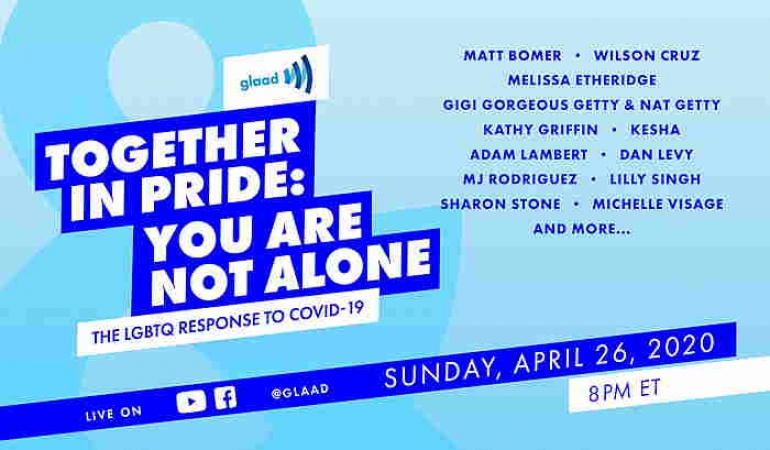 Find more information: https://www.glaad.org/blog/glaad-present-together-pride-you-are-not-alone-star-studded-livestream-event