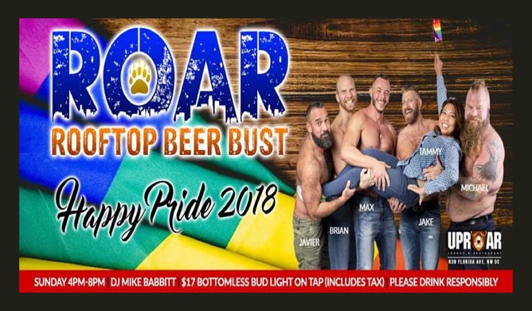 Voted Gay DC's "Best Rooftop" in 2017 & 2016, UPROAR is your neighborhood bear bar, open 7 days a week. It's just a quick walk or short Uber ride away!