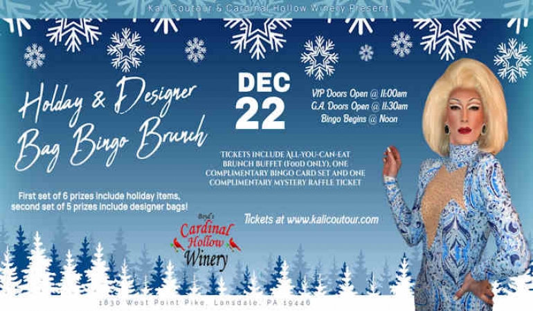 Holiday & Designer Bag Drag Bingo Brunch at Boyd's Cardinal Hollow Winery in West Point PA
